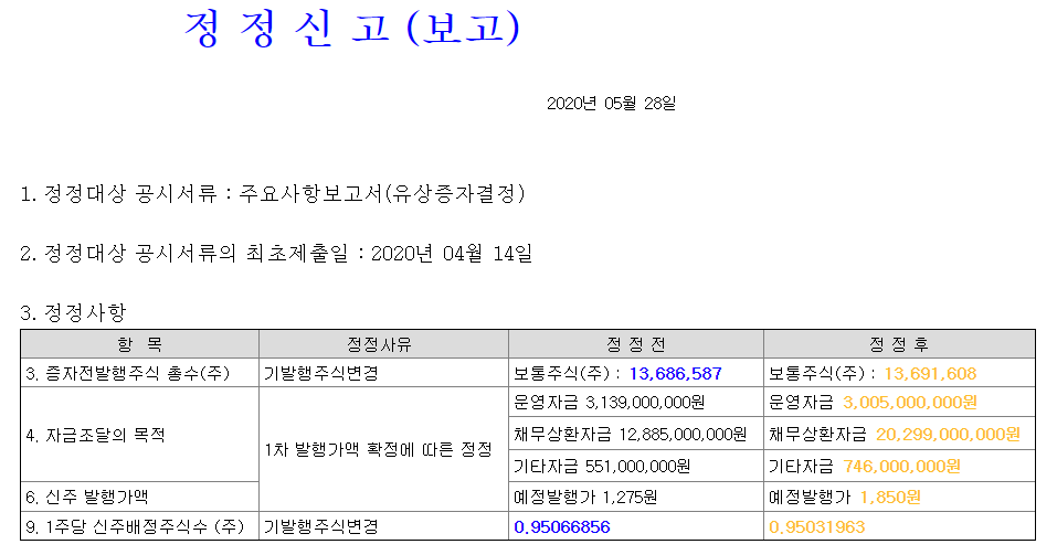 유증 예상가격이 1,275원 이였는데, 갑자기 공시 정정을 금일 하였습니다.