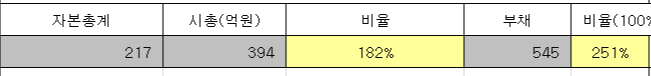 장기적으로는 회사가 부채비율이 251% 였는데
