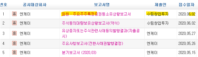 어제 공시에 수림창업투자 지분 공시가 있었습니다.