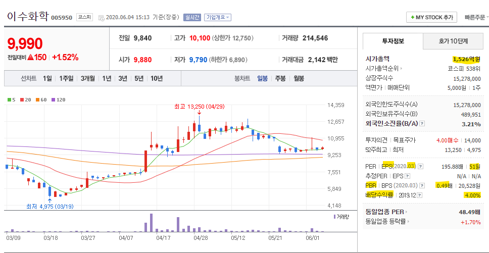포인트 : 작년 배당 4%의 좋은 회사임에, 코로나19로 인해 주가가 20~30% 비싸진 것이 단점.