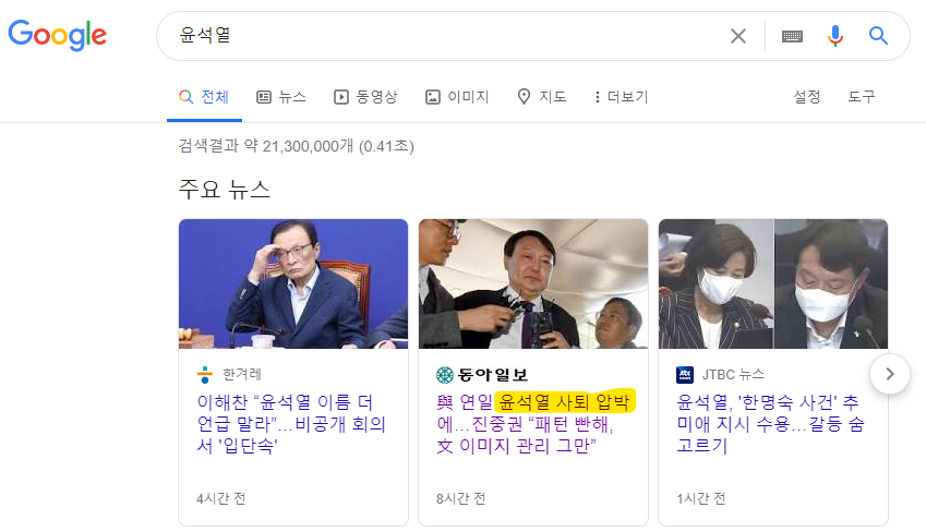 어제 뉴스에선가 윤석열 총장님 이름이 거론된 걸 본거 같은데,
