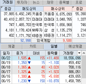거래량이 터지면서 혹시나 싶어서 매수 상위 거래원을 보게 되었습니다.