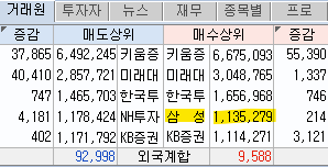키움 매수 상위 중 삼성 창에서는 113만 주 올 순매수...