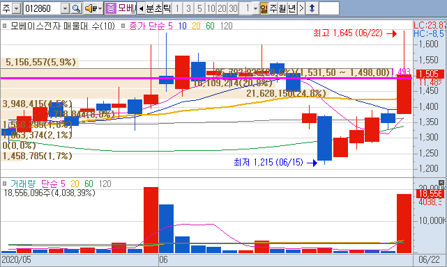 금일도 여전히 북한, 코로나19등의 이슈 가운데, 서연을 대장으로 해서 덕성, 그 후발주자로 모베이스전자가 좋은 흐름을 가져갔습니다.