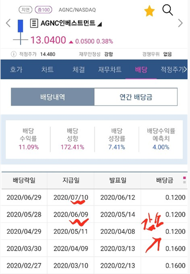 AGNC는 월배당을 받으려고 2년 전부터 매수해서 이익을 본 주식입니다.