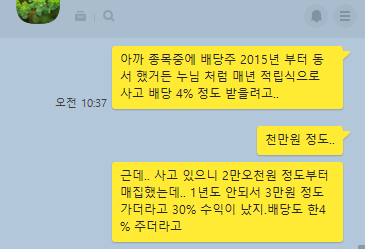 [아까 종목 중에 배당주 2015년부터 동서 했거든 누님처럼 매년 적립식으로 사고 배당 4% 정도 받으려고..]