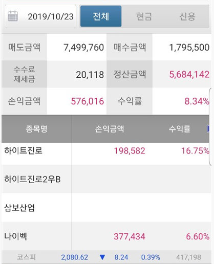 는 위에 책에 말에 일단 반만 실현하려다 전량 실현했습니다.