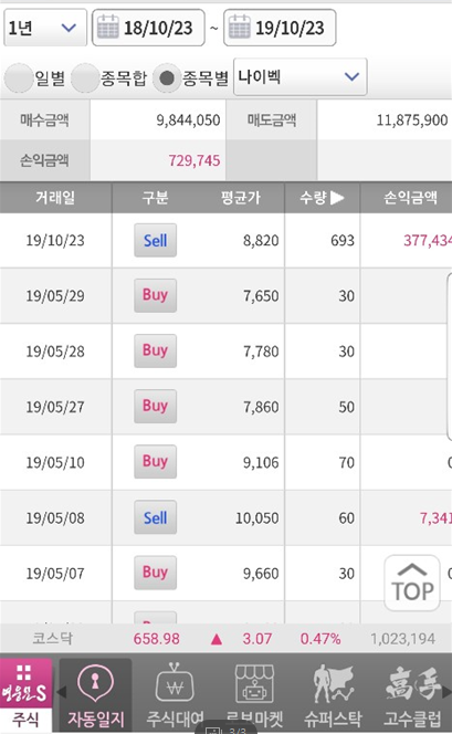 무슨 배짱이였는지 3배수 물타기로 고수처럼 나이벡 빠져나오려다가 한 달 만에 번 돈 다 토해내고 손실이 늘어납니다.