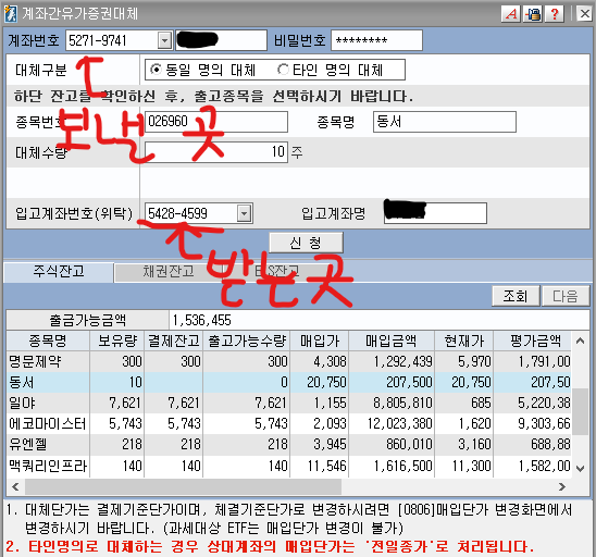 그래서 장투 계좌로 명한 계좌에다 주식을 보내는 방법
