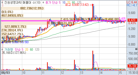 금일 약간 아쉬운 꼬리를 달았지만 항시 꼬리를 달았던 진원생명과학을 보았다면 이정도면 완전 상한가 감입니다.