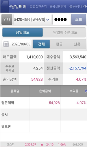 저의 계좌는 겨우 보합상태입니다.