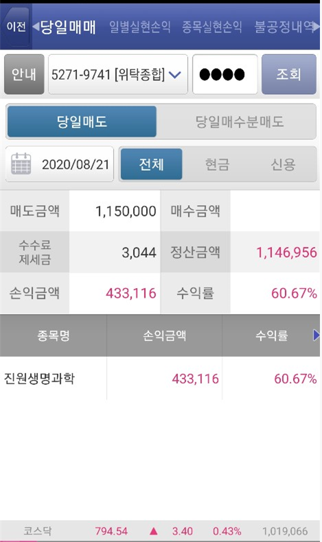 시초가 5%가량 시작 : 작전대로 팔려다 순간 멈짓거려서 팔지 못하고 망설입니다.