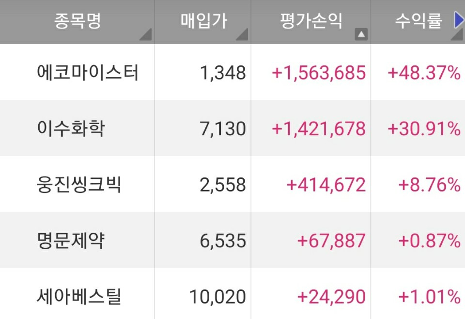 누구나 알고, 흑자가 나는 기업에 투자를 했습니다.