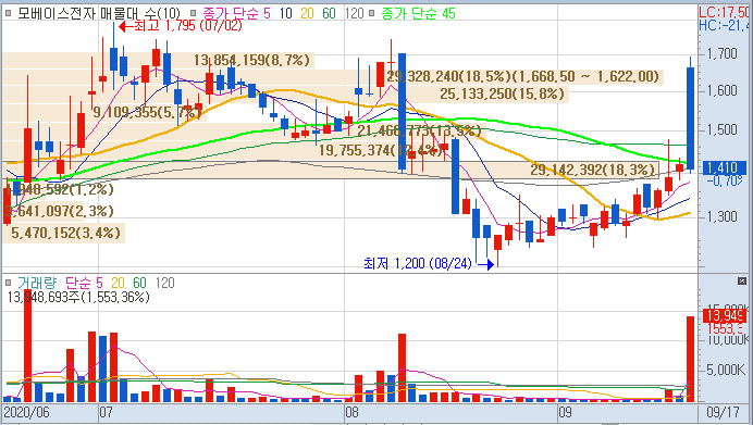 모베이스 전자는 대선 주로 거론되며 저도 계속 보유하면서 단타를 친 종목입니다.
