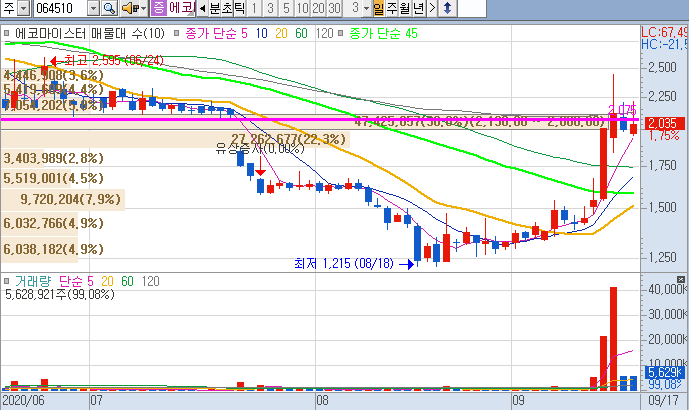 에코마이스터 또한 2,000원대의 지지선이 지켜줘서인지 방심했네요.
