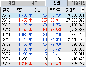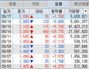 금일 시초가 17% 상승하는 것을 보고