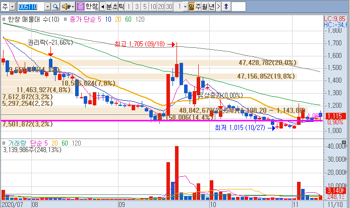 한창은 트럼프 관련 대북주로 편승되었다가 바이든 당선 이후 급락하였지만