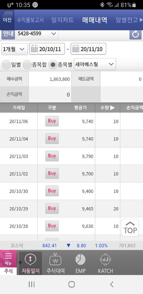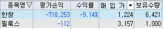 유증 이후 급등을 예상하고 매집했지만 이건 약간의 탐욕으로 스트레스 받음