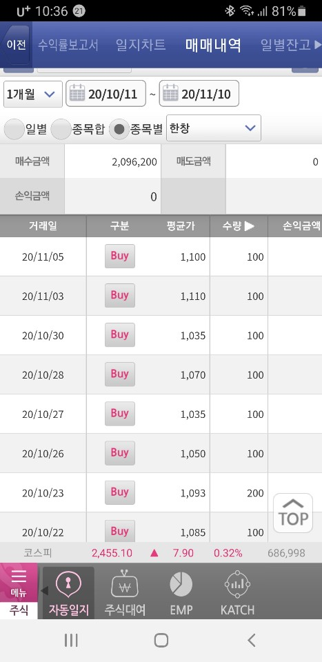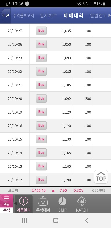 투자금액을 소량으로 하여 생각날 때마다 분할 매수를 하곤 합니다.