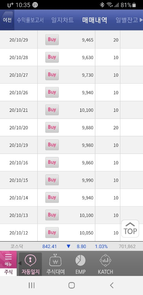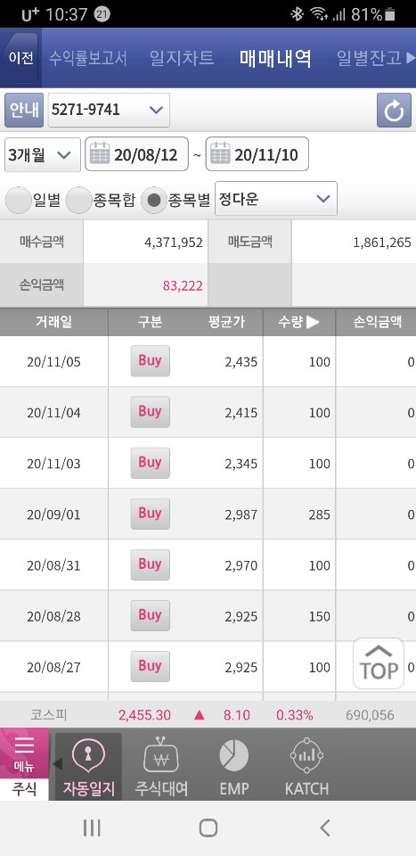 카카오 뱅크 내년 공모주 상장 기대로 1년 전부터 시간 날 때 그냥 매집 10만 원씩 기분 내킬 때