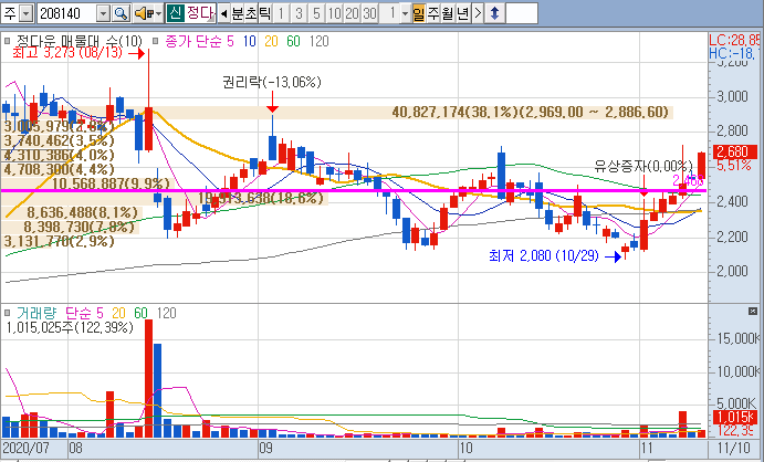 유증 이후 유증가보다 많이 빠져서 낙폭과대로 판단.