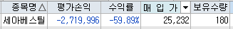 3년 전에 매수하여 평단 2.5만 원에 물려서 지금 -60% 수익률이기 때문입니다.