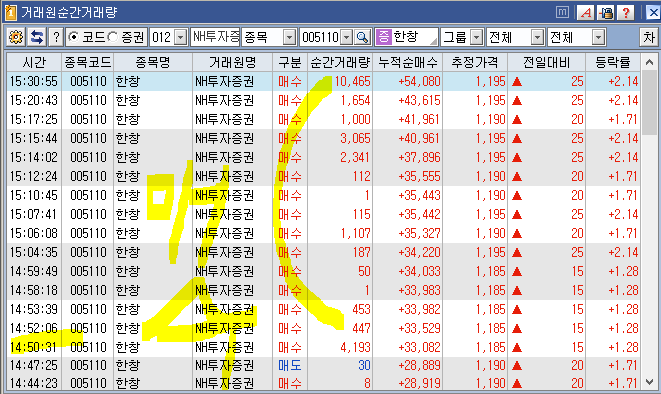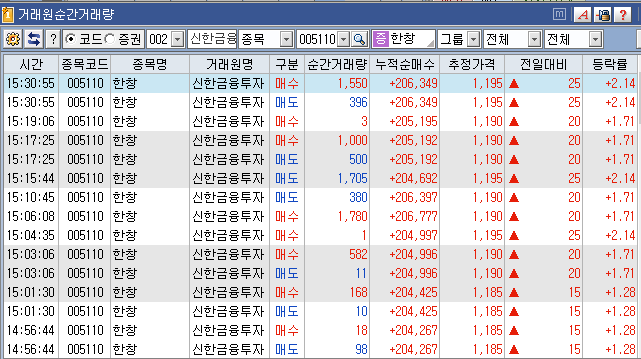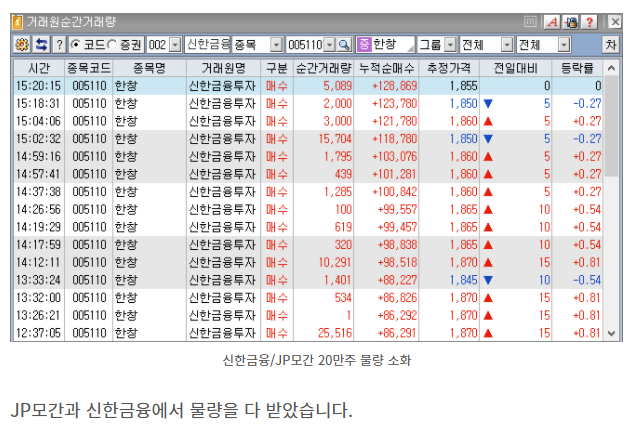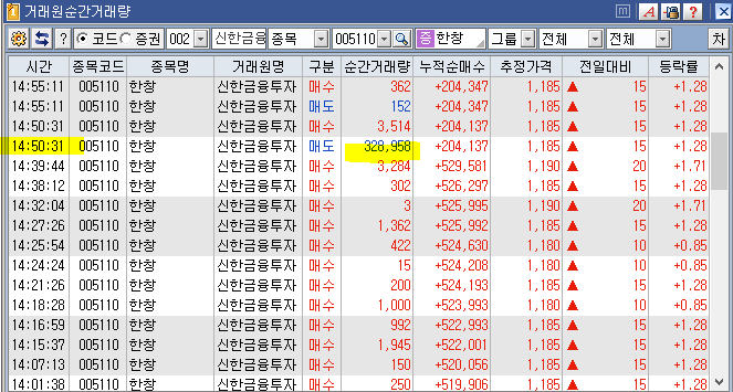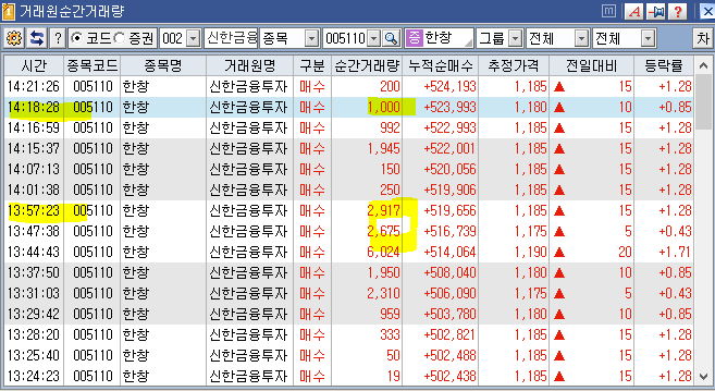 마땅이 있어야 할 신한금융투자 에 매수세가 없어서 오전에 못 봤으면 그냥 지나쳤을것으로 예상 대량 물량을 찾아보았습니다.