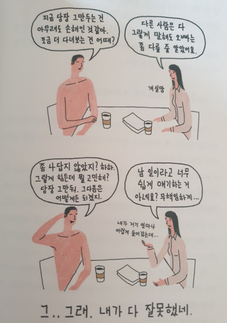 우리 사회는 정답이 정해져 있다. 그 글로 안 가면 손가락질받는다.