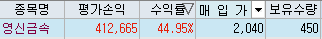 2020/11/09 - [재테크/국내 주식] - 3년의 기다림. [자동차 부품, 볼트/영신금속]