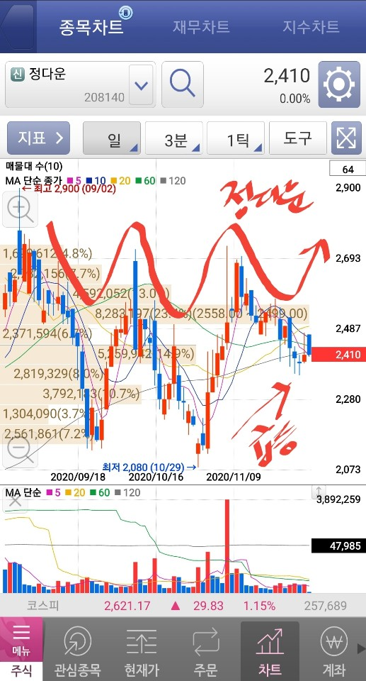 일단 이 종목 들고 지지선을 한번 치고 나가면