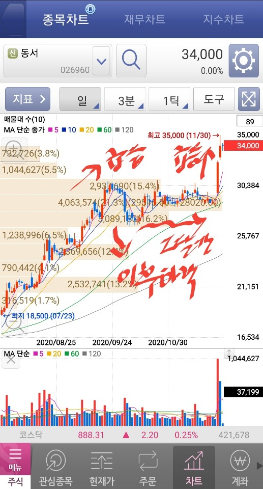 최근 동서 종목에서 몇 달간 100% 넘게 급등을 하는 차트를 보면서