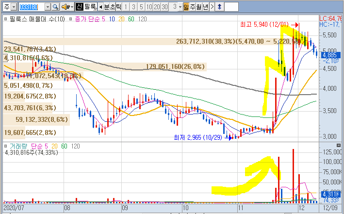 최근 가장 유사한 흐름이 필룩스 종목에서 나온거 같습니다.