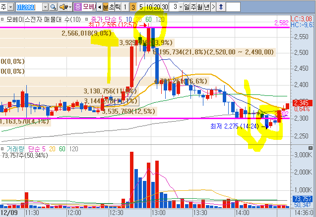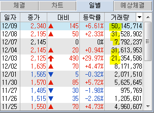 그러던 중 거래량이 늘더니 점심때쯤 대량거래량으로