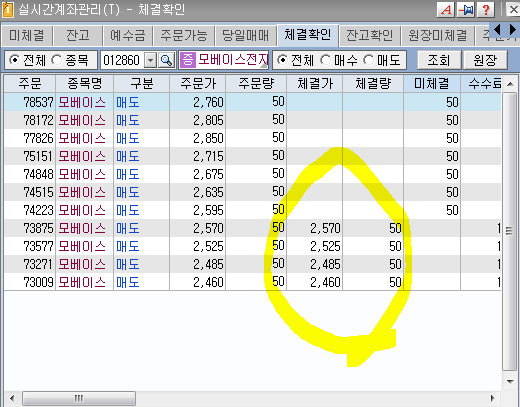 상방으로 매도 막 걸어놓은것이 매도 체결 되엇네요.