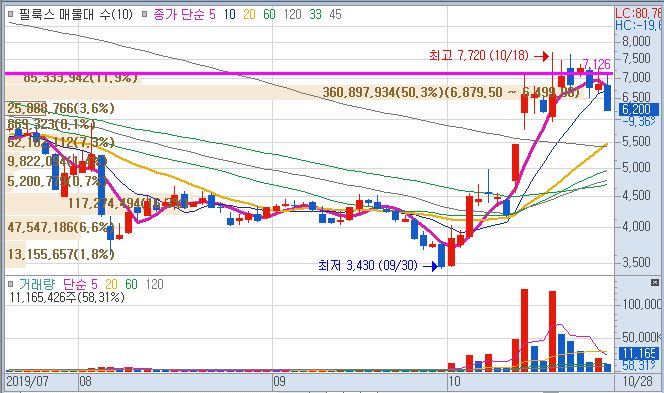 1주 전 23조 코스피 거래대금 중 5조 가량(15%)이 필룩스 거래였다고 기록하고 있었습니다.
