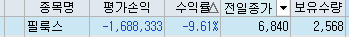 금요일에 -68만원에 이어, 금일도 -168만 원