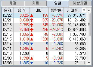 어제 쌍 상한가에 이어 금일도 두 종목도 20% 이상을 유지하더니,