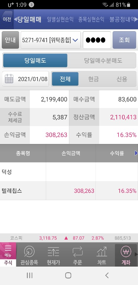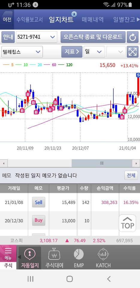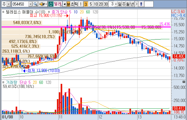 텔레칩스는 지인의 추천종목으로 순전히 차트상으로만 산 종목입니다.