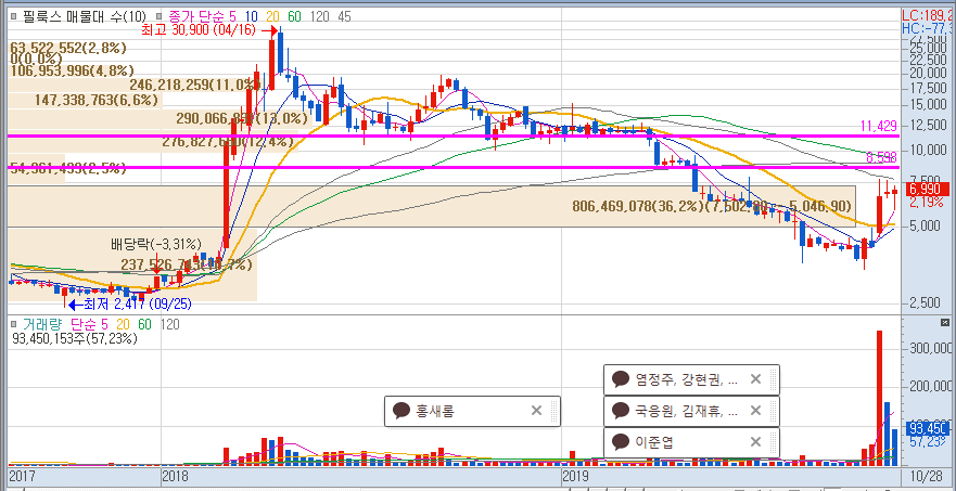 p.s 금일 코스피 거래대금 5조 6천억 원 // 필룩스 4,400억 원 약 7.8%를 차지하고 있습니다.