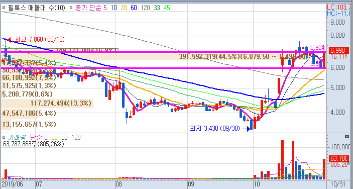 앞서 글에서 쓴 글처럼 금일도 6천3백만 주의 거래가 일었는데, 분명 6천 원대에서 시작하여, 7천 원대에 16%를 상승하면서 안착을 했습니다.
