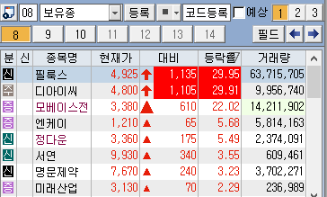 윤석열 관련주 및 전기차 테마로 완전히 종목이 달라졌습니다.