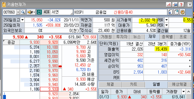 이렇게만 본다면 아까 분석한 모베이스전자에 한참 밀리고 서연에도 밀리네요.