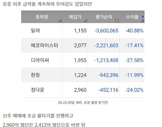 그 이후 정다운은 유증가 이후에서 -20% 정도로 버벅되다가