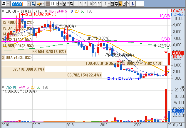 디아이씨는 6,500원과 10,000원의 강력한 저항선이 있지만