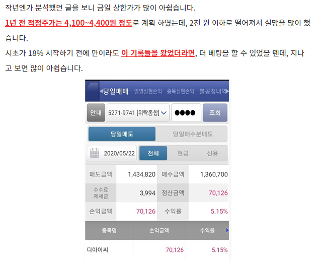 만족하는 수익률을 얻고도 참으로 아쉬웠던 경험이 있습니다.
