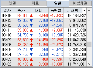 초급등주 흐름을 보기위해 금일 분석한 대선주나 급등락 테마주 흐름을 보면