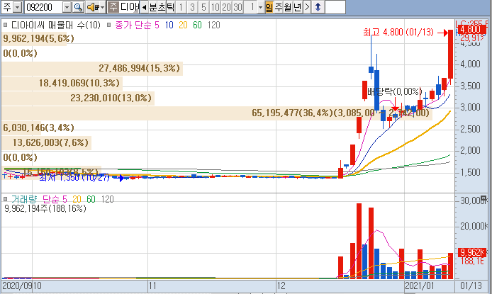 디아이씨는 정책테마주인 전기차테마이기 때문에