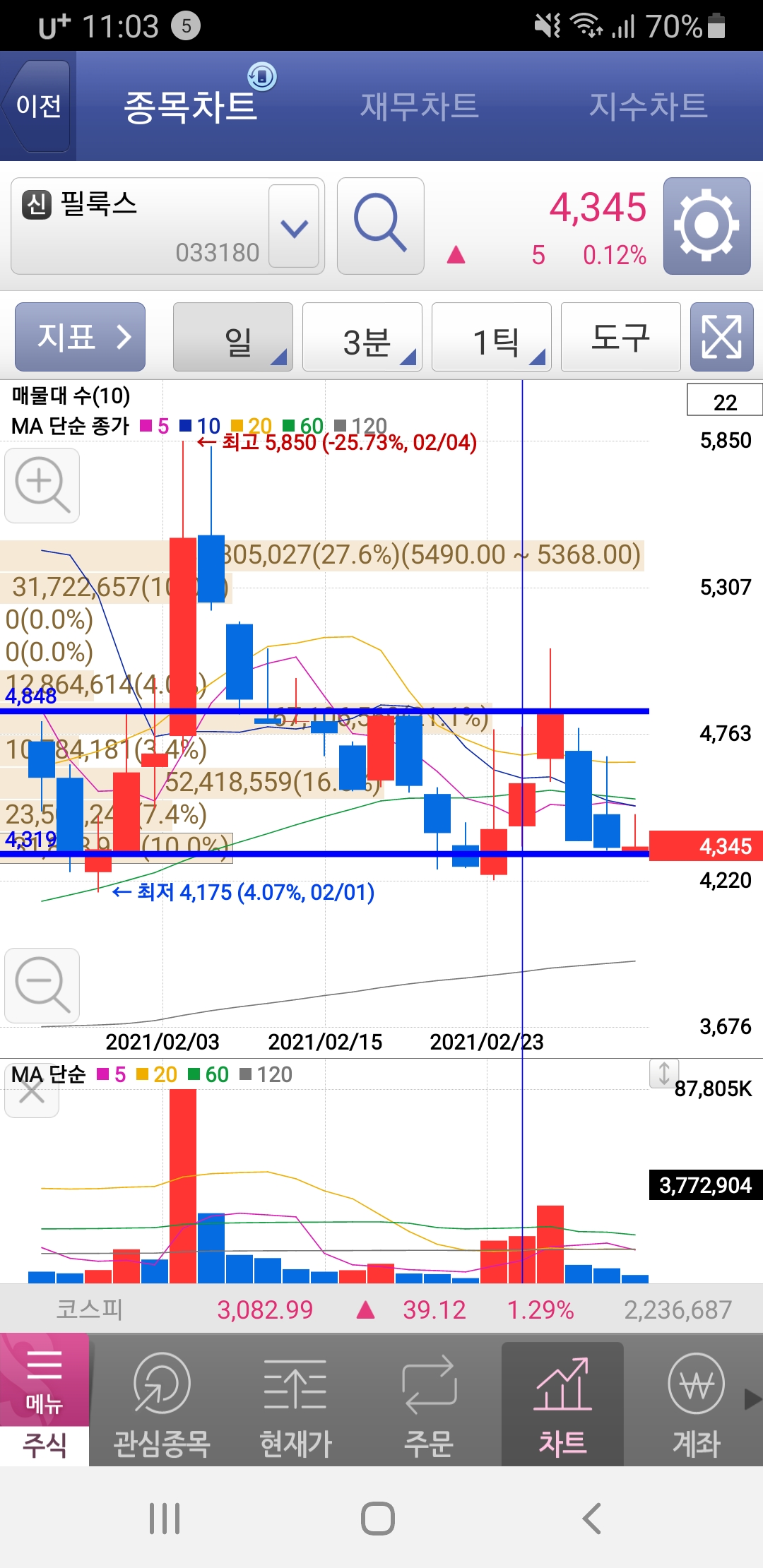 유상증자전의 저의 필룩스 예상적정가격은 3800원 미만에서 안전하다 보았습니다.