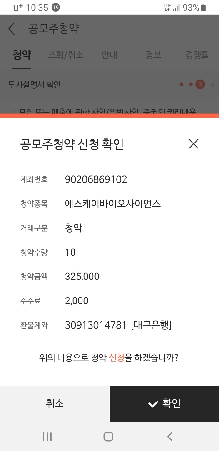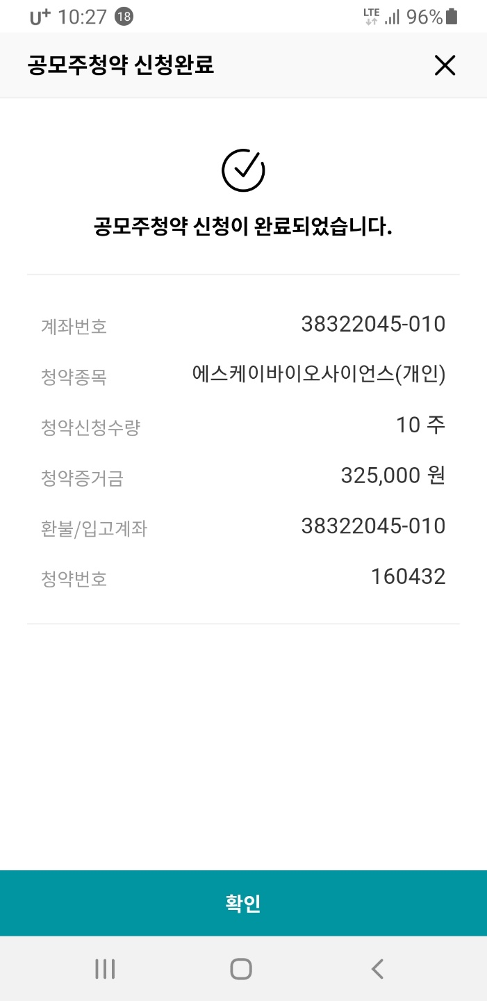 잔여 금액이 있어서 나머지는 한국투자증권에 청약을 했습니다.