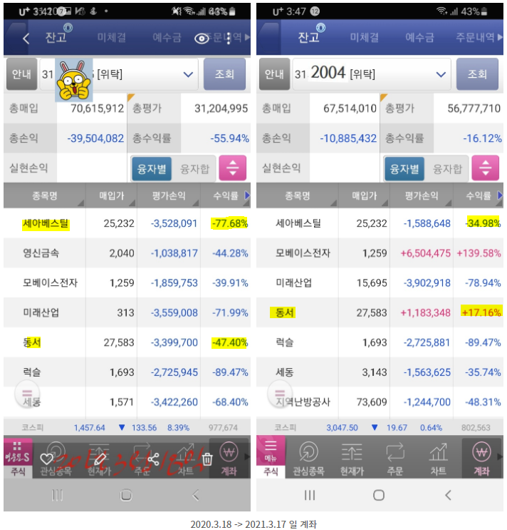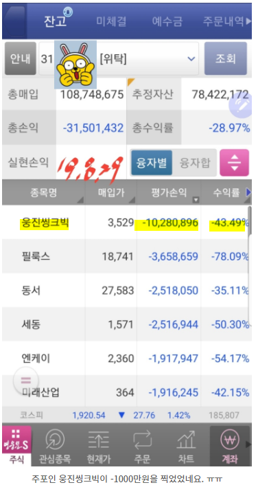 2019.12.27 - [재테크/국내 주식] - 8-2. 마이 내렸다 아이가?(웅진싱크빅!!!)